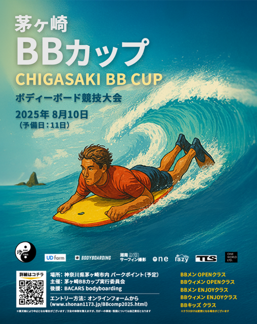 日本有数のサーフスポット・湘南茅ヶ崎で、熱いボディーボードバトルが繰り広げられます! レベルを問わず、全国からBB選手が集結し、華麗なライディングを競います。海と波、人と熱気が一体となるこのイベントを現地観戦&ハイライト映像でお楽しみください!